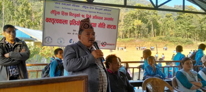 लैंगिक हिंसा विरुद्ध १६ दिने अभियान अन्तर्गत महिला हिंसाका विषयमा गीति नाटक प्रस्तुत गरेको हो । साथै उक्त विद्यालयमा अध्ययनर विद्यार्थीहरुविच बत्तृmत्वकला समेत भएको छ ।
