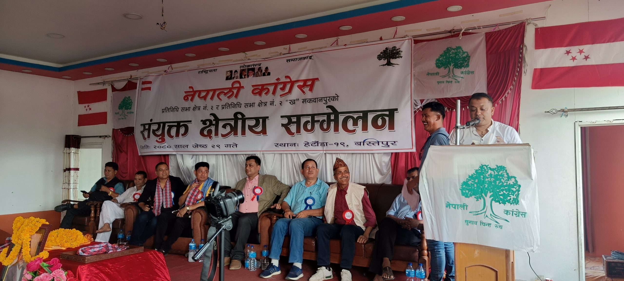 मकवानपुर क्षेत्र नम्बर २ का सभापति लाेक मुक्तानकाे सभाध्यक्षता तथा नेपाली कांग्रेसका केन्द्रीय महामन्त्री गगन थापाको प्रमुख आथित्यता र बागमती प्रदेश सभापति ईन्द्रबहादुर बानियाँको विशिष्ट आतिथ्यतामा सम्मेलन भएकाे हाे ।